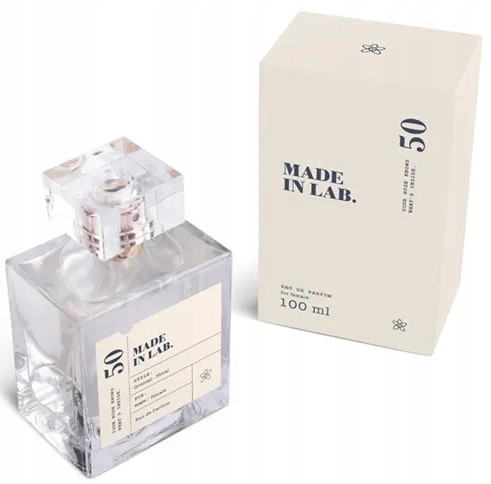 Made In Lab 50 — це сміливий і сучасний аромат, який втілює свободу, індивідуальність і силу. Аромат відкривається свіжим і ароматичним поєднанням лаванди і цитрусових нот, таких як мандарин, створюючи живий і освіжаючий вступ. Також буде нотка чорної смородини. Серцем аромату є квітковий букет з жасмину та флердоранжу, який додає жіночний та чуттєвий акцент. Базові ноти включають теплі та деревні акорди ванілі, кедра та амбри, що надають глибини, насиченості та нотки чуттєвості.