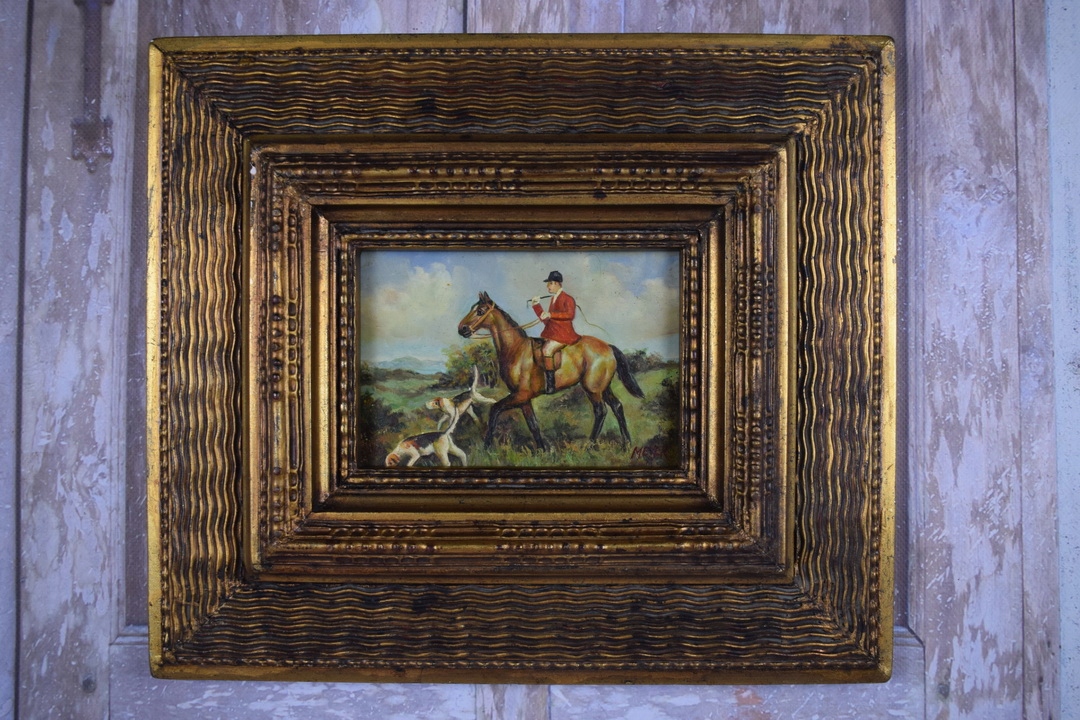 Пари силового полювання - Мисливець на коні з собаками - Картина маслом - Красива рамка