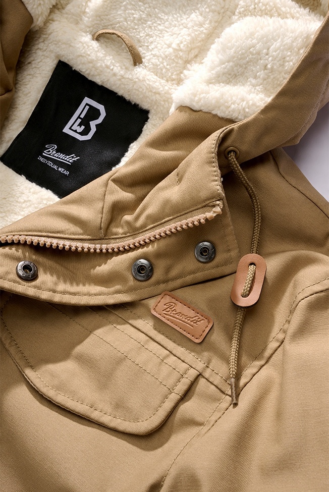Куртка BRANDIT Marsh Lake Parka Camel (9442.7) - чоловіча зимова куртка, що характеризується утепленим коміром і високим коміром. Крім того, всередині є підкладка, що робить куртку теплою. Парка - це довга куртка, яка доходить до середини стегон, тому виробник міг вкласти 2 великих нижніх кишені, 2 верхніх і 1 внутрішню кишеню.