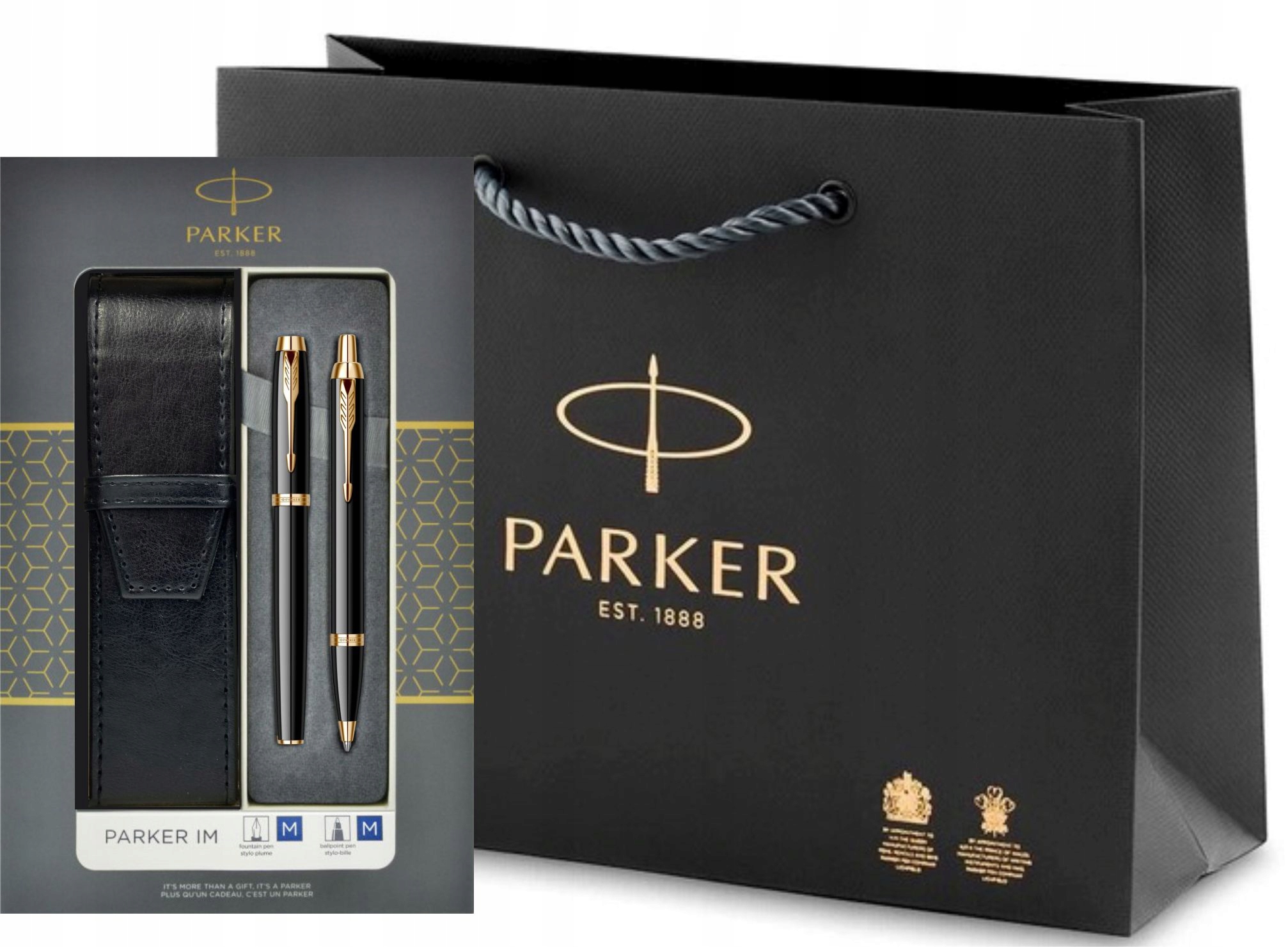 PARKER DŁUGOPIS I PIÓRO IM GT ZŁOCONE z GRAWEREM W PUDEŁKU I ETUI CZARNE