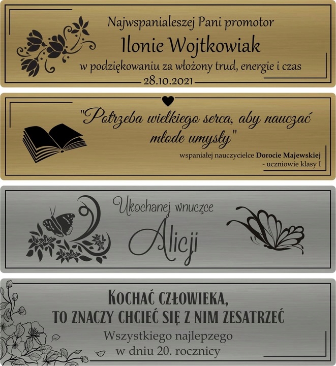 Набір включає срібну або золоту тарілку, прикріплену до коробки (див. Основну фотографію), на якій ми гравруємо будь -який вміст - ви також можете надихнути та використовувати наші конструкції, використовуючи власні дані