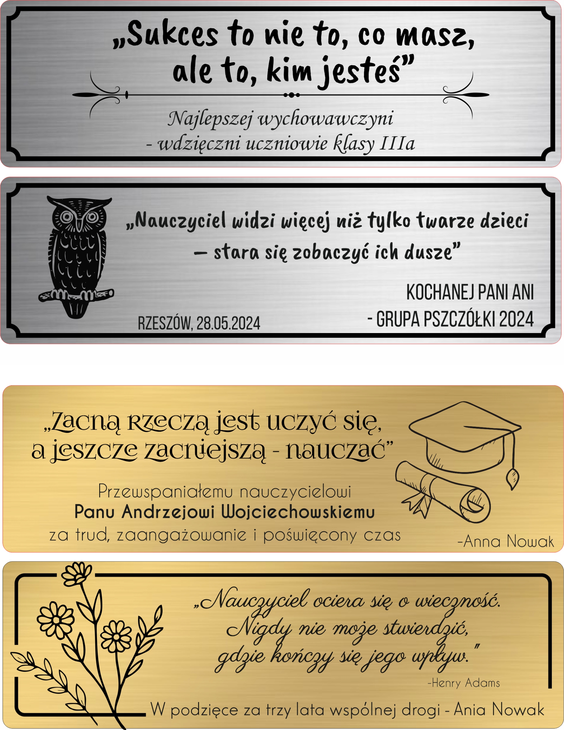 Гравюри зразків: Увага! Гравірування завжди виходить подібним до кольору, показаного на візуалізації. Вибирати неможливо.