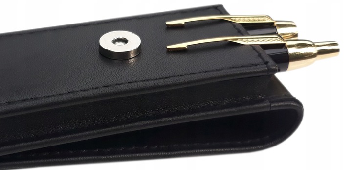 Надзвичайно ніжний на дотик чохол виробництва Польща з високоякісної натуральної телячої шкіри. Закривається на магнітну кліпсу. Незамінна в школі та в офісі. Він може вмістити один або два продукти.
