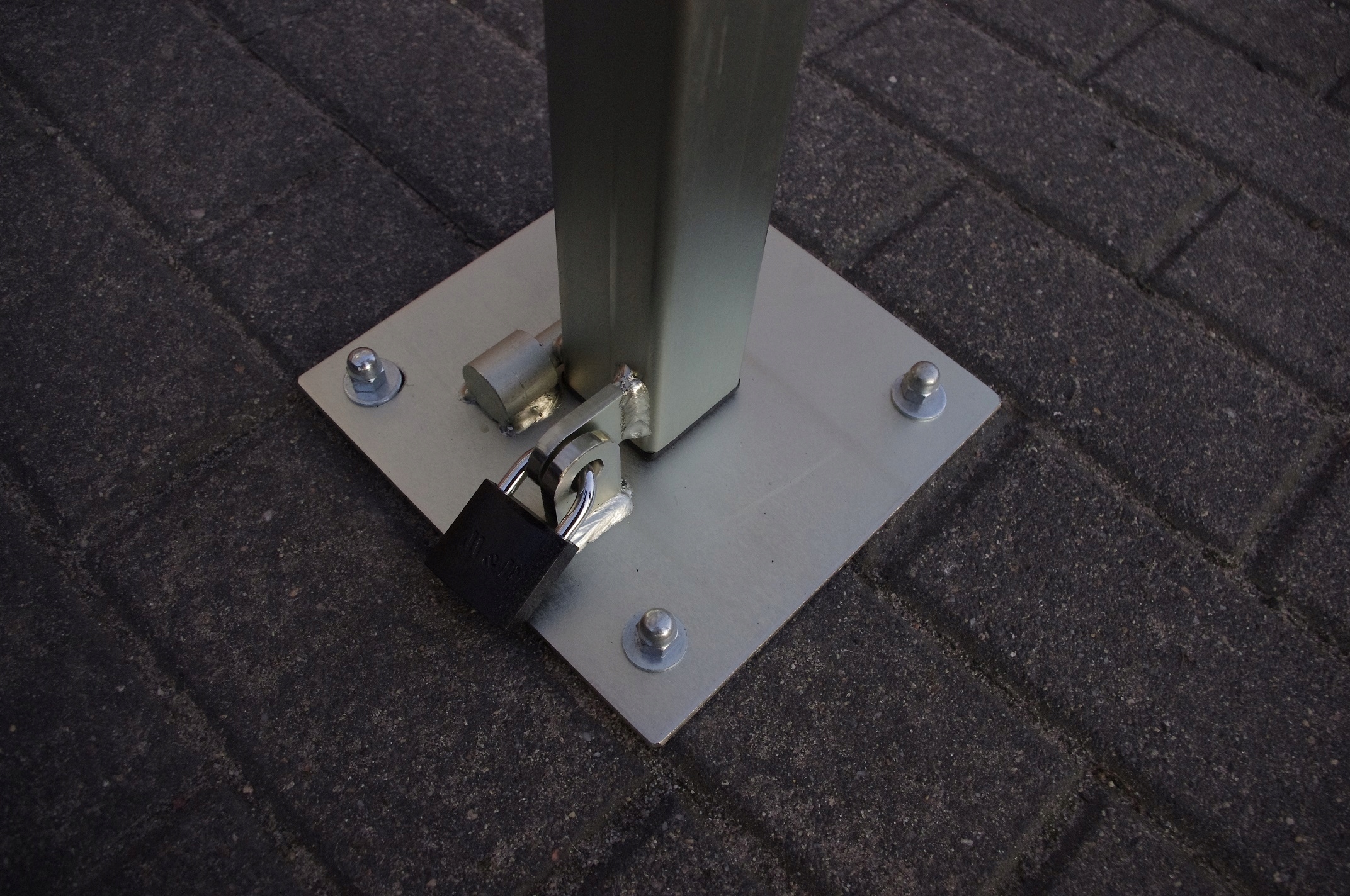 Установка блокування дуже проста (розширення штифтів). Основа кожної блокади - це листовий метал товщиною 4 мм і профіль 50x50x3 мм, завдяки якому він міцний, міцний і стабільний.