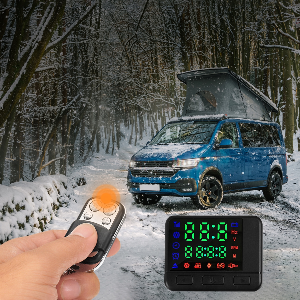- За допомогою цифрового РК-монітора ви можете чітко бачити робочий стан дизельного повітронагрівача. Крім того, перед тим, як сісти в автомобіль, ви можете скористатися функцією попереднього підігріву за допомогою пульта дистанційного керування.
