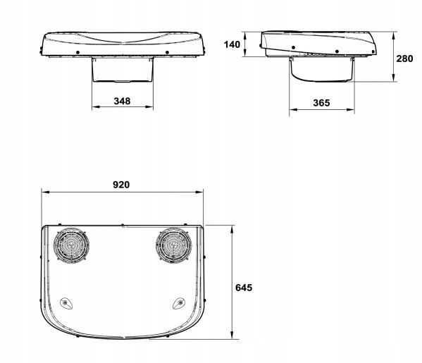 - Розміри випарника довжина х ширина х висота (мм) - 387 x 349 x 165