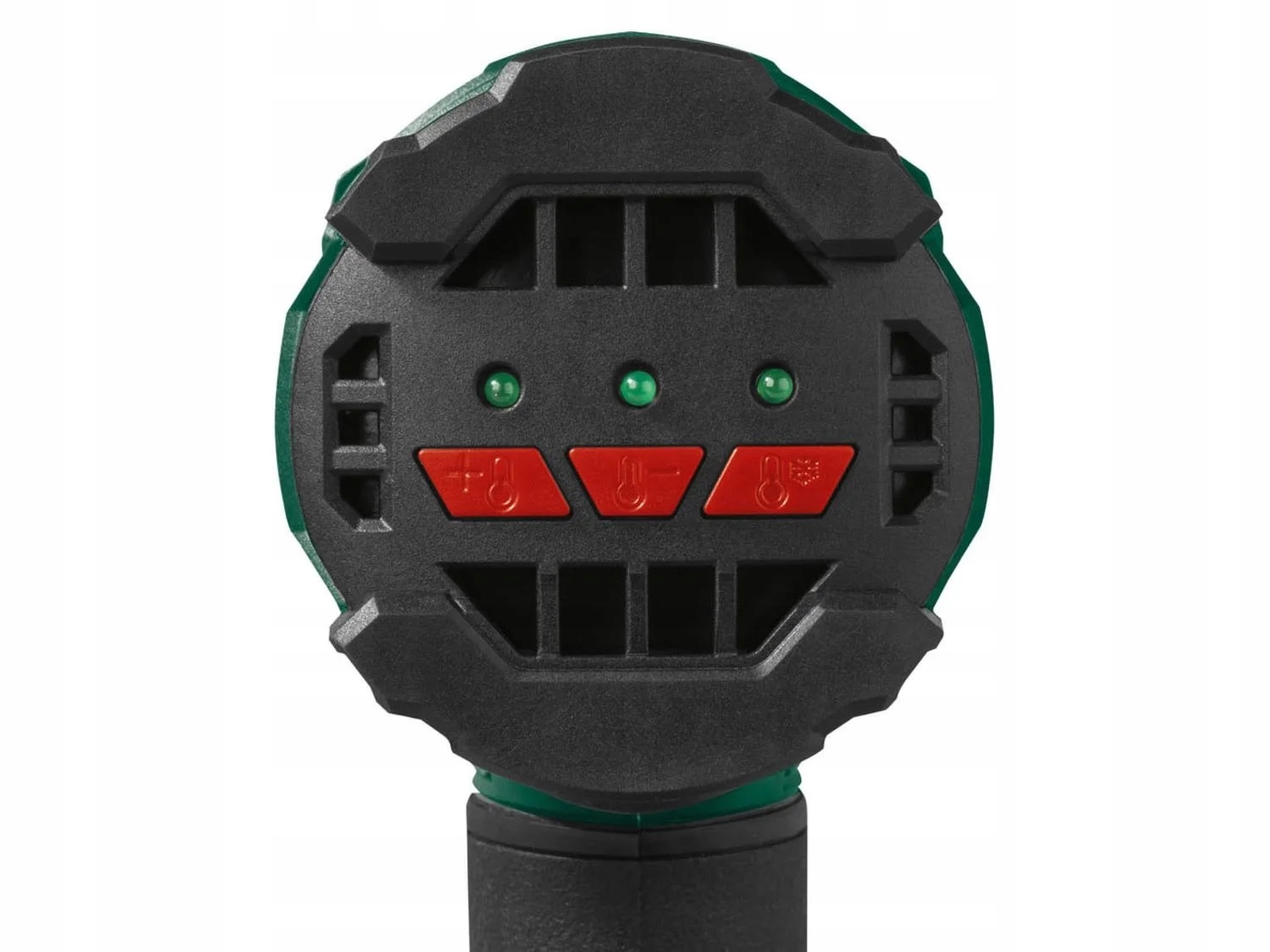 - вибір температури за допомогою кнопки: праворуч: холодне повітря, посередині: тепле повітря ступінь 1, ліворуч: тепле повітря ступінь 2