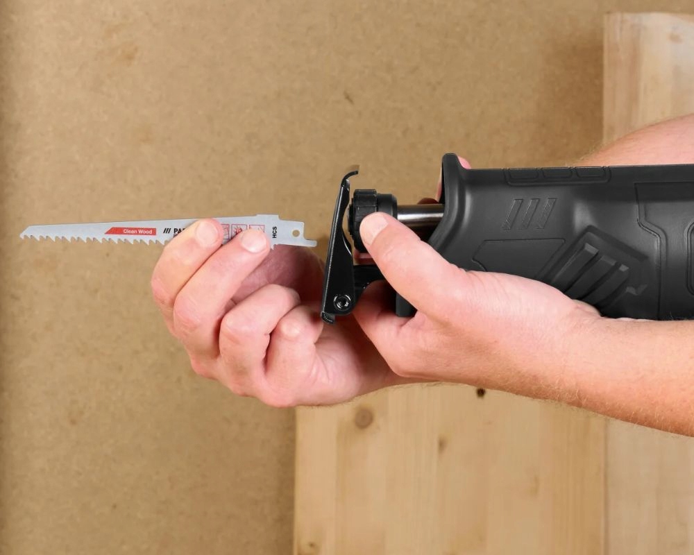 Система пов'язаної заміни леза дозволяє миттєву підготовку пилки для наступних завдань, не використовуючи додаткових інструментів. Розширена стопа дозволяє регулювати глибину різання, що збільшує управління та точність роботи, як при обробці деревини, так і під металу.