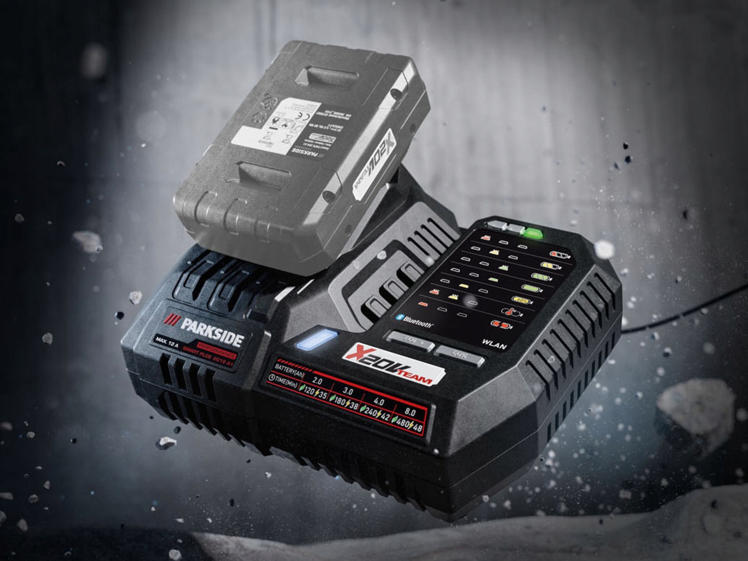 додаткова кнопка зарядки на стадії - пристрій, сумісний з усіма батареями серії parkside x 20 V команди