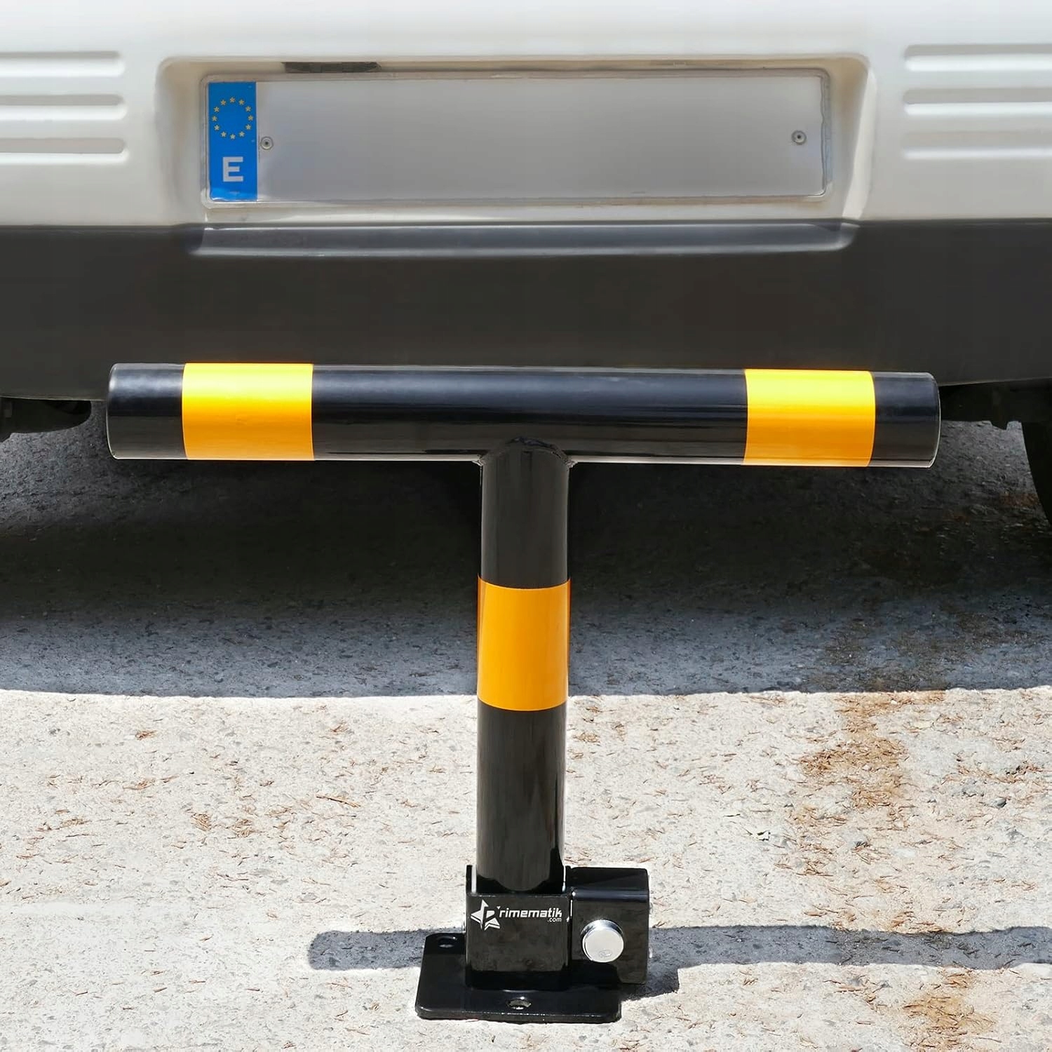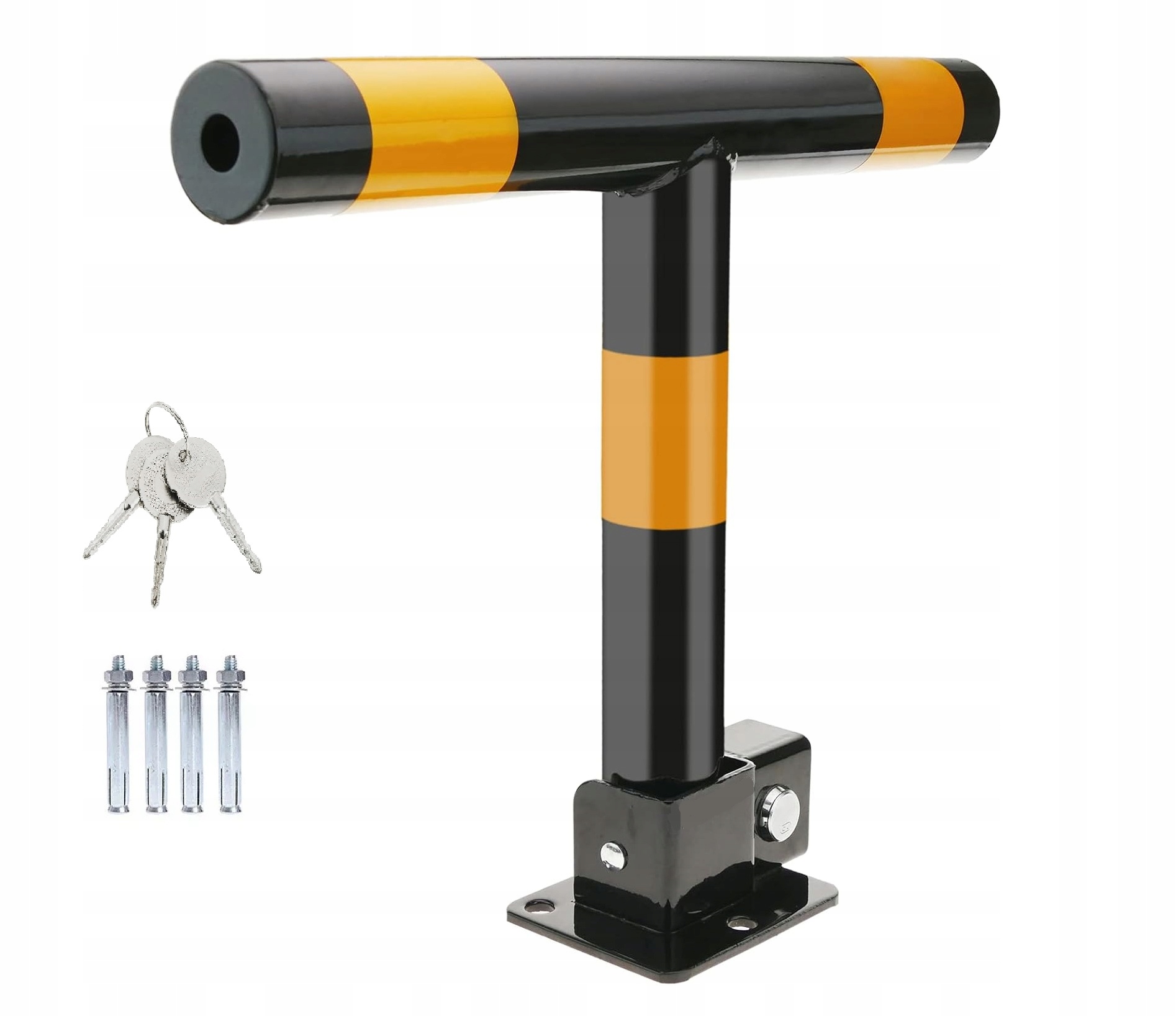 "T", укладений замок для паркування є практичним захистом місця для паркування проти несанкціонованого заняття. Виготовлений із розфарбованої порошком сталі, відрізняється високою стійкістю до погодних умов, корозії та механічних пошкоджень. Завдяки його дизайну із закругленими руками та обробкою в контрастних кольорах (чорно -жовті) із світловідбиваючими елементами, це добре видно як вдень, так і вночі.