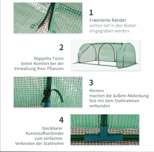 вхід: ✔ Швидкий і простий в очищенні✔ Порада: фольга для огляду на 10 см довше, ніж металеві труби з боків. Завдяки цьому нижній край може бути закопаний у землі або завантажений камінням. Це робить теплицю більш стабільною