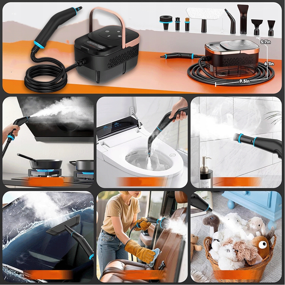ПАРОЧИСТКА ПОТУЖНІСТЮ 2500 ВТ З 9 АКСЕСУАРАМИ ДЛЯ ПРИБИРАННЯ АВТОМОБІЛІВ ТА ПІДЛОГИ