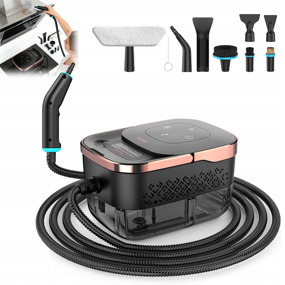 ПРОФЕСІЙНИЙ РУЧНИЙ ОТПАРИВАЛЬНИК 2500 Вт З 9 АКСЕСУАРАМИ - НАБІР ДЛЯ ОЧИЩЕННЯ ВІКОН ТА ПІДЛОГИ АВТОМОБІЛЯ (ЧОРНИЙ + РОЗЕВЕ ЗОЛОТО)