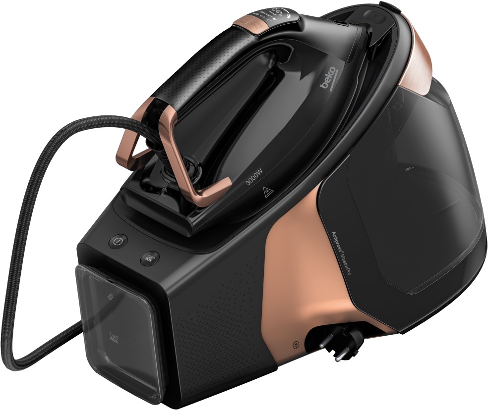 Парогенератор потужністю 3000 Вт, тиск 8 бар, ємність бака 1,8 л, керамічна підошва SoftGlide, безперервний потік пари 165 г/хв, можливість вертикального прасування.