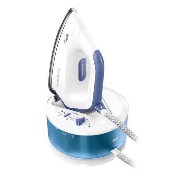 Нова модель Braun CareStyle Compact поєднує потужність парогенератора з практичним, зручним і компактним дизайном, заощаджуючи 50% часу та місця*. *Економія 50% часу (згідно з внутрішніми лабораторними тестами порівняно з паровою праскою Braun TS 5) і 50% місця (порівняно з праскою з парогенератором Braun IS 7056).