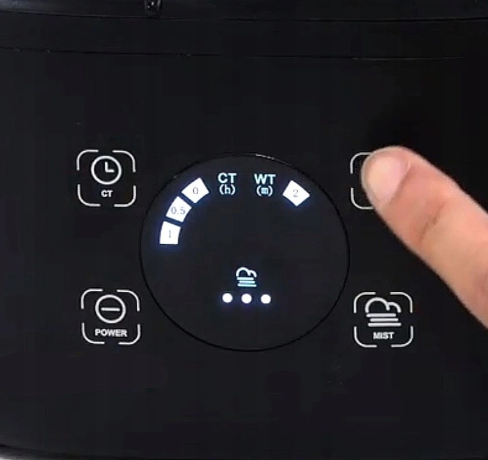 Налаштування частоти та часу подачі пари: пристрій може вмикатися кожні: 30 хвилин, 1 годину, 2 години, 3 години i 4 години. Час роботи можна встановити: 2 хв, 5 хв, 10 хв, 30 хв, 1 год і 2 год.