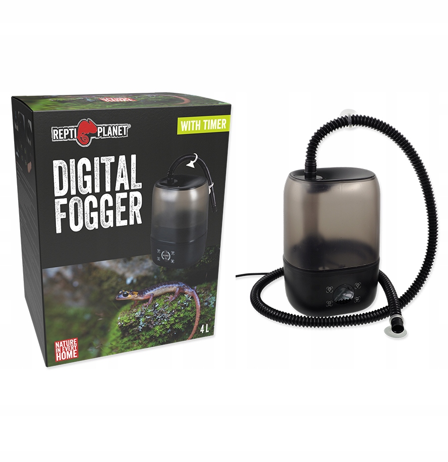 Digital Fogger - це сучасний пристрій, який створює справжній холодний туман. Туманоутворювач ідеально підходить для підвищення вологості в пустелі або тропічному тераріумі. Він може підвищити вологість до 100% при безперервній роботі. Він наближає природне середовище, а туман є дивовижною прикрасою для будь-якого тераріуму.