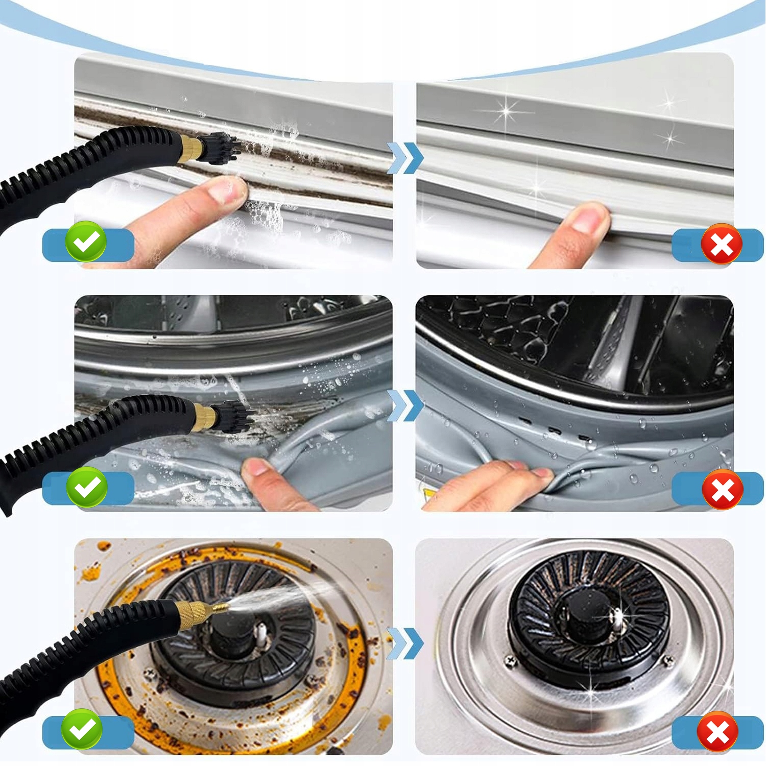☑️Багатофункціональні щітки з насадками:Цей відпарювач чудово справляється з чищенням і прасуванням. Три види щіток, такі як: кутова насадка, гнучкий подовжувач, насадка з щіткою, відпарювач тканини. Він є універсальним і може очистити всі важкодоступні щілини, кути, кути, а також різні поверхні/матеріали: кухонну мийку, стільницю, решітку, туалет, підлогу, дитячі іграшки, матрац для тварин, автомобіль, диван та одяг.