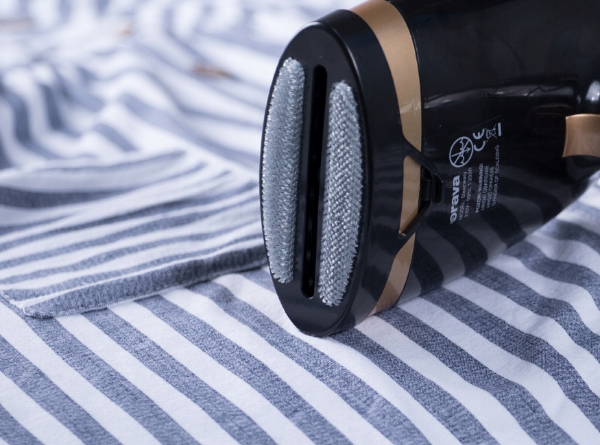 Прикріплений тримач пензля може бути вставлений на паровий панель Orava Steameasa. Ручний пароплав для одягу перетворюється на зручний ручний пилосос, який, завдяки силі гарячої пари, ефективно видаляє запахи, кліщі, бактерії та віруси з домашнього одягу та текстилю. Таким чином тканини будуть не тільки ідеально згладжені, але й чисті.