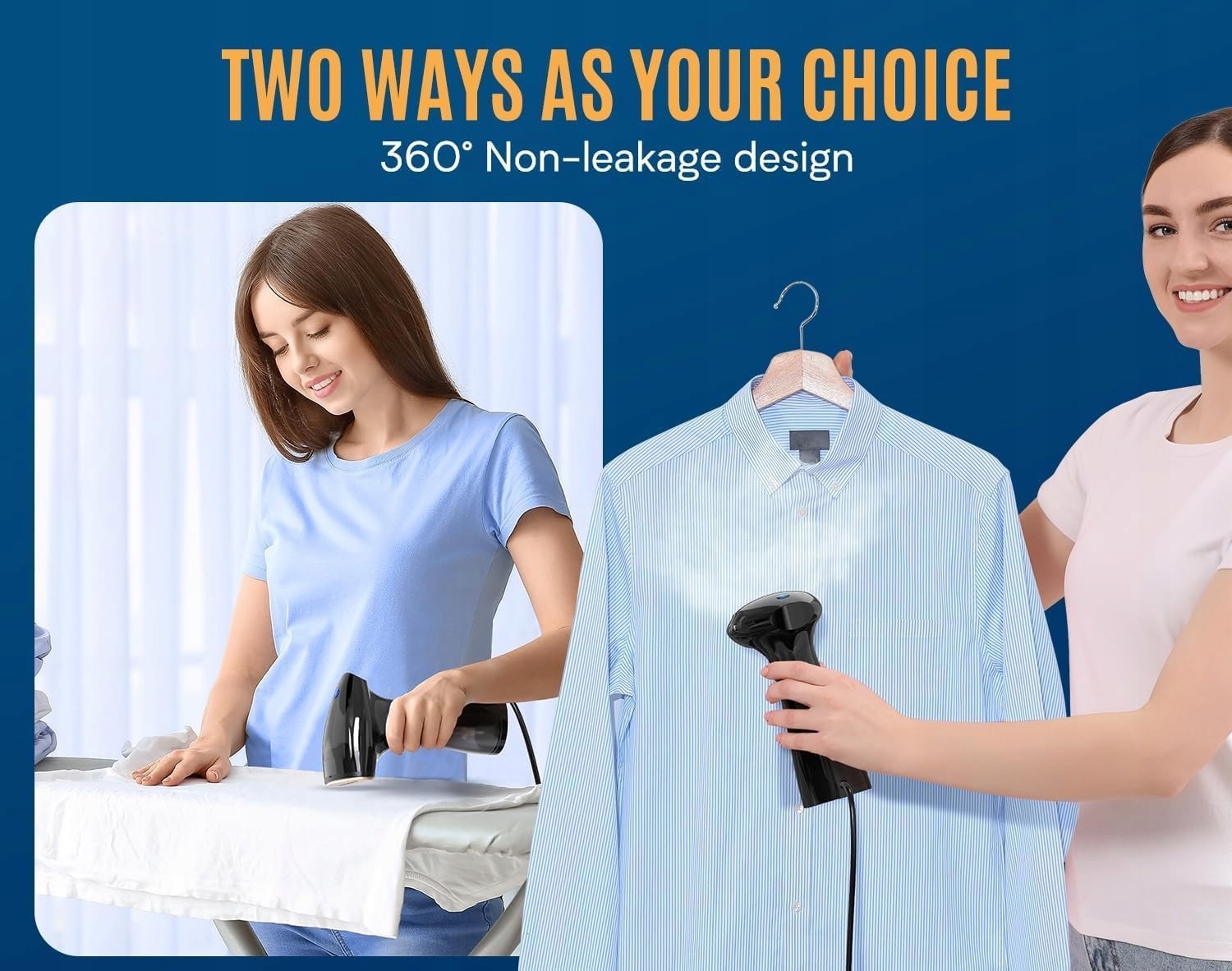 Залізна обробка для паровий одяг за допомогою однієї кнопки полегшує її використання. Вимкнення вимикача негайно зупиняє пару, що значно покращує безпеку під час використання. Наш туристичний пароплав можна використовувати вертикально та горизонтально. Безпечне прасування 360 ° без витоків.