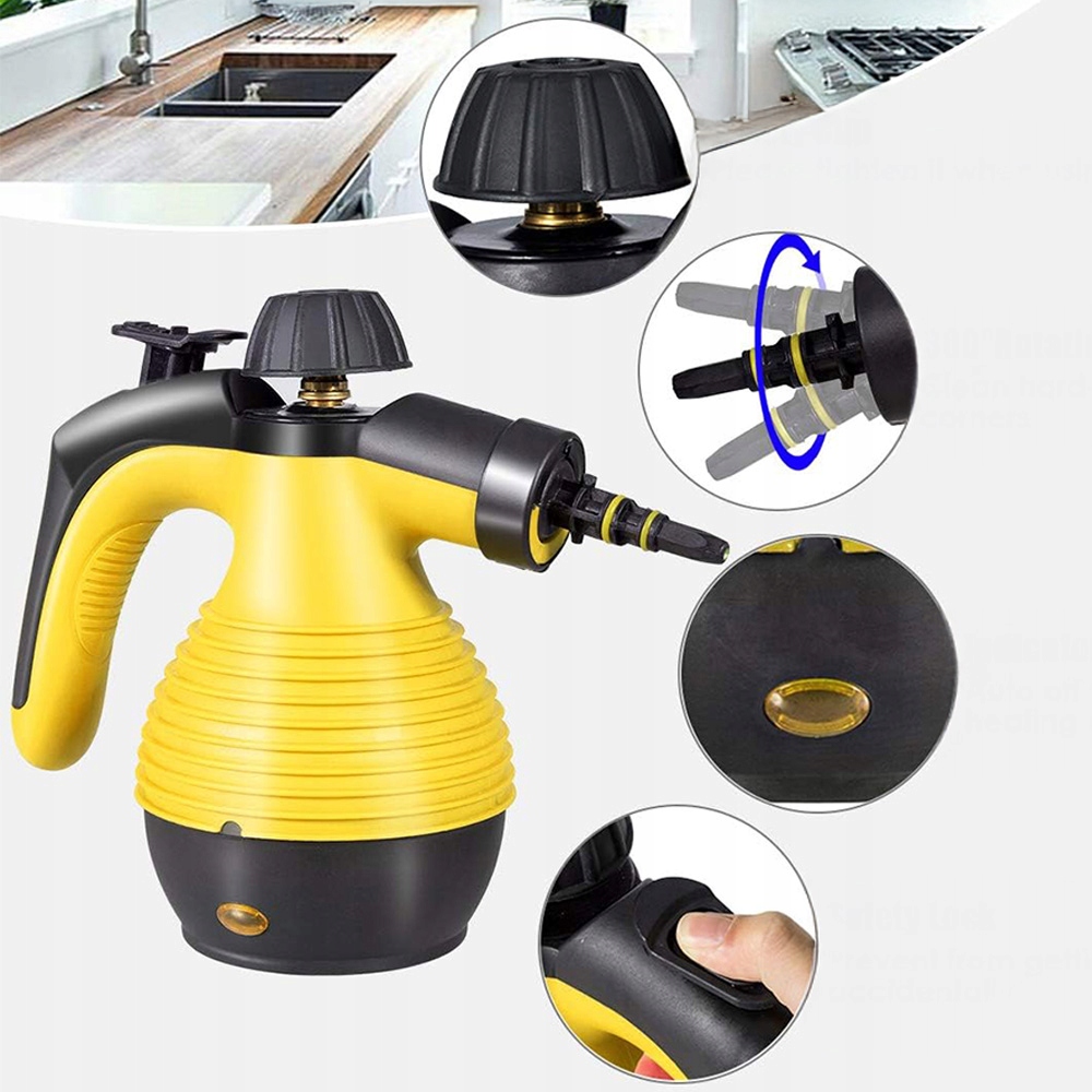 очищувач вакууму вручну з 9-х частинами аксесуарів, 1050 Вт, 350 мл, портативний паровий пилосос, багатофункціональний, ідеально підходить для видалення плям, кухні, штор, машина, підлоги, ванних кімнат