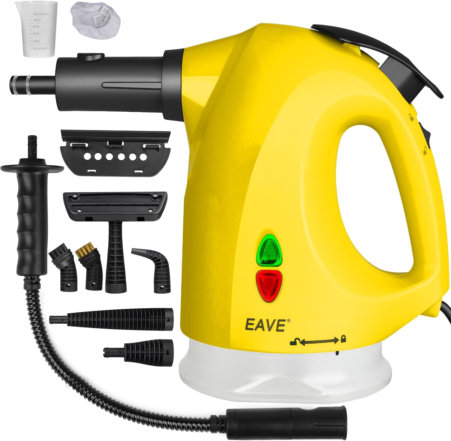 - 【чищення пари без прибирання рук без втоми. Утримуйте кнопку Steam, поки кнопка блокування не буде натиснута вгору. Потім відпустіть руки і зачекайте приблизно 30 секунд, пристрій автоматично випаровується! Після очищення натисніть кнопку вниз, щоб розблокувати її. 4 Вам не доведеться чекати, коли він охолоне та відкриє обкладинку. Прозорий резервуар робить рівень води видимим, тому ви можете легко перевірити, чи резервуар для води заповнений. Світло, портативний і з довгим мережевим кабелем (4 м) Цей пароплав може працювати далі і працювати здалеку. 4 Повний набір аксесуарів, таких як: розширення шланга, насадка з довгим розпиленням, насадка з високим тиском, кутова насадка для душу, нейлонова щітка, інструмент випаровування матеріалу, скрепер/двері вікон та багато інших доповнень. Він має універсальне використання і може чистити важкі для досягнення прогалин, кутів, кутів, а також різних поверхонь/матеріалів. 4 Слід пам’ятати, що це найсильніший, який вимагає коротшого часу очищення.