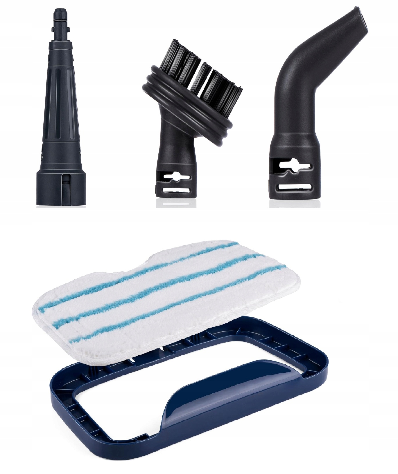 Крім щітки для підлоги, парова швабра Dirt Devil має три насадки: маленьку вигнуту насадку, точкову насадку та насадку-щітку. Ці насадки призначені для використання з ручним пароочисником. Точкова насадка і вигнута насадка ідеально підходять для тісних кутів і важкодоступних місць. Насадка-щітка використовується для чищення раковин, духовок, розчину та килимів.