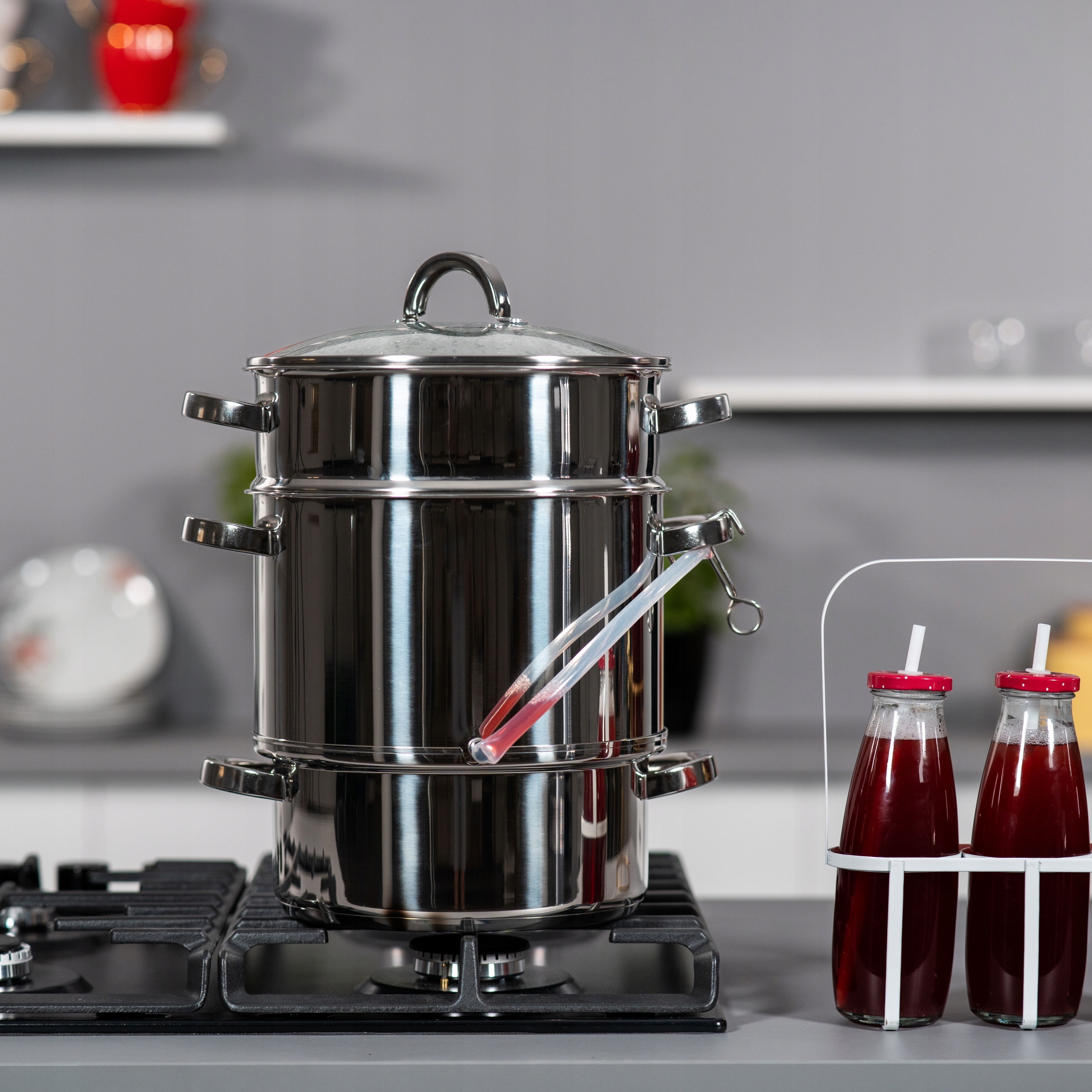 Завдяки спеціальному багатошаровому дну соковижималка підходить для всіх типів плит - індукційних, газових, електричних, керамічних і галогенних.