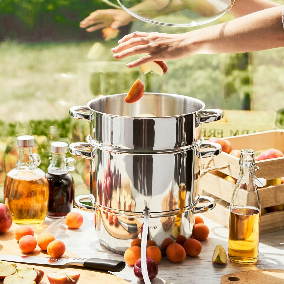 Вам не терпиться скуштувати поєднання яблук, смородини та винограду? Представлена парова соковижималка оснащена зручним шлангом, завдяки якому ви зможете спробувати цей напій з ароматом літа. Ви можете зручно перелити його надлишки в глечик або заздалегідь підготовлені скляні пляшки, щоб вони могли зберігатися в домашній коморі в очікуванні осінньо-зимового сезону. Також не варто забувати про м'якоть, яка залишиться від полуниці або інших фруктів. Ви можете використовувати його для варення, варення, а після охолодження також у святкових десертах з морозива.