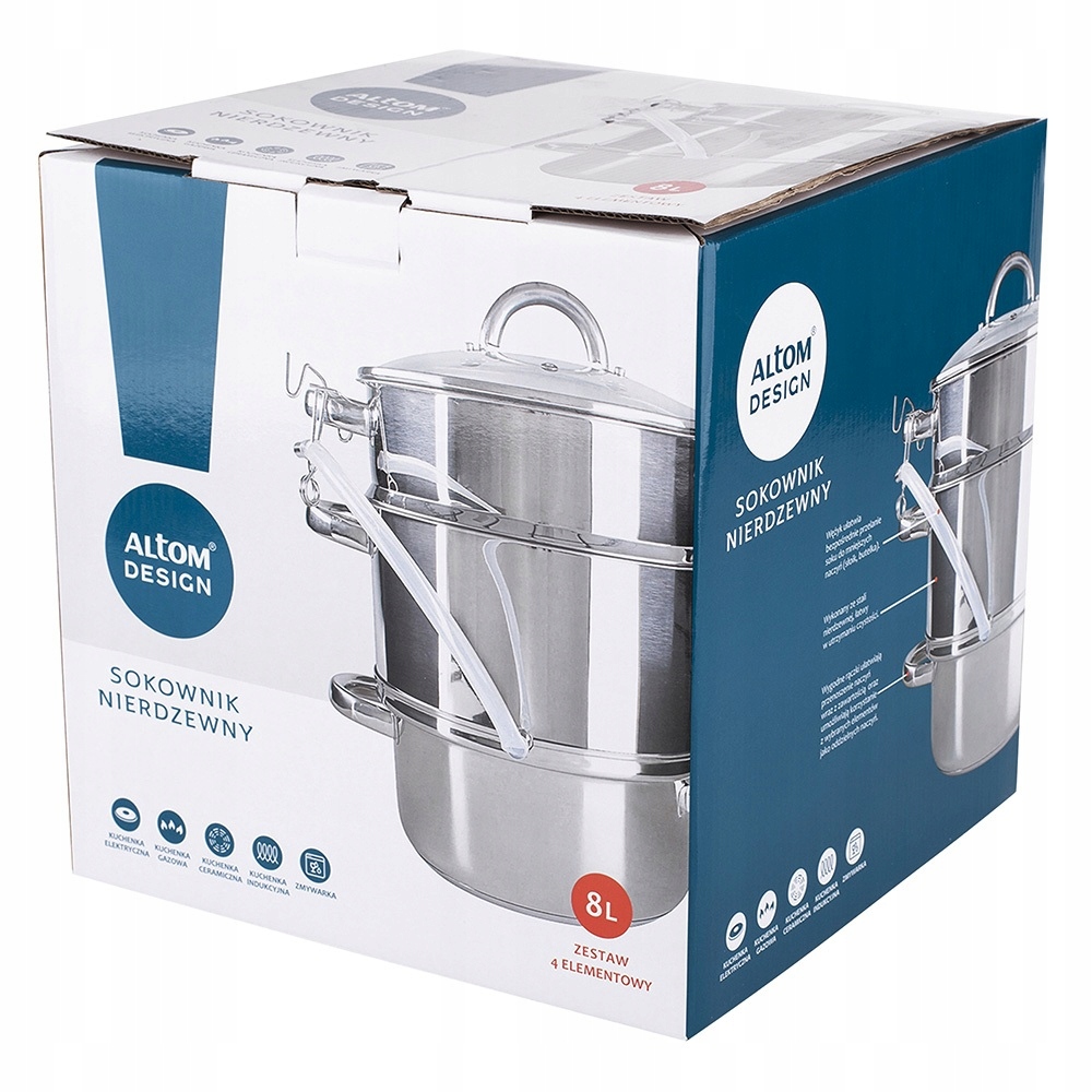 Парова соковижималка з нержавіючої сталі індукційна і газова Altom Design 8 л + банки