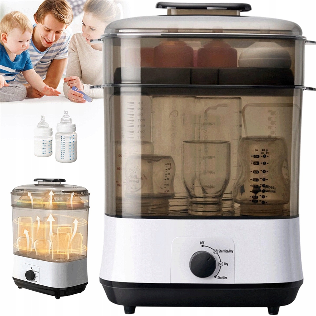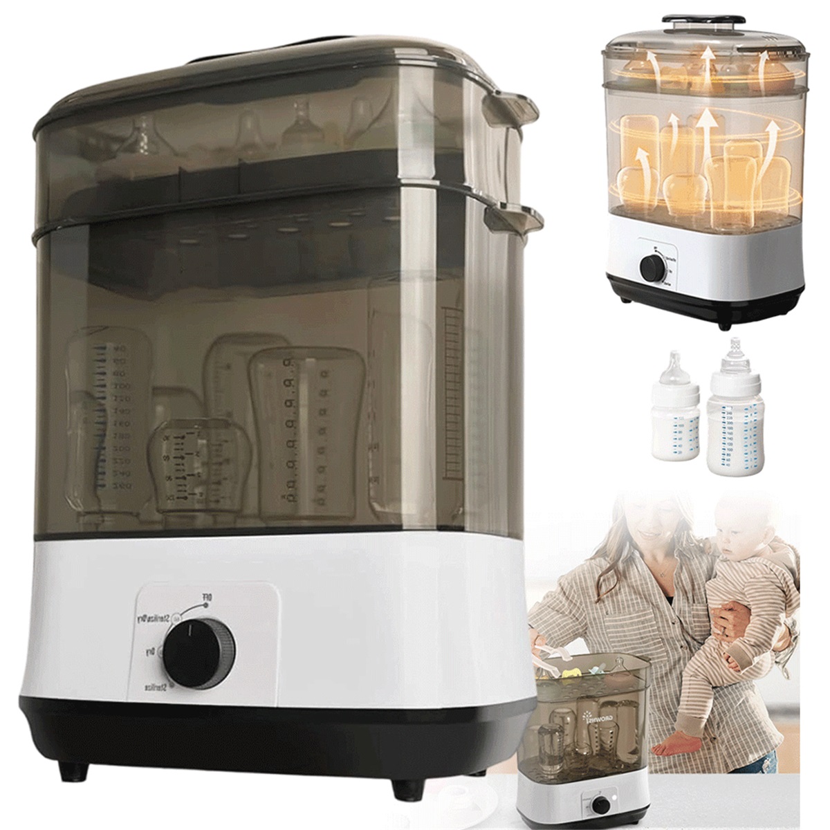 Стерилізатор паровий для пляшечок із сосками, електричний, двоповерховий, великий