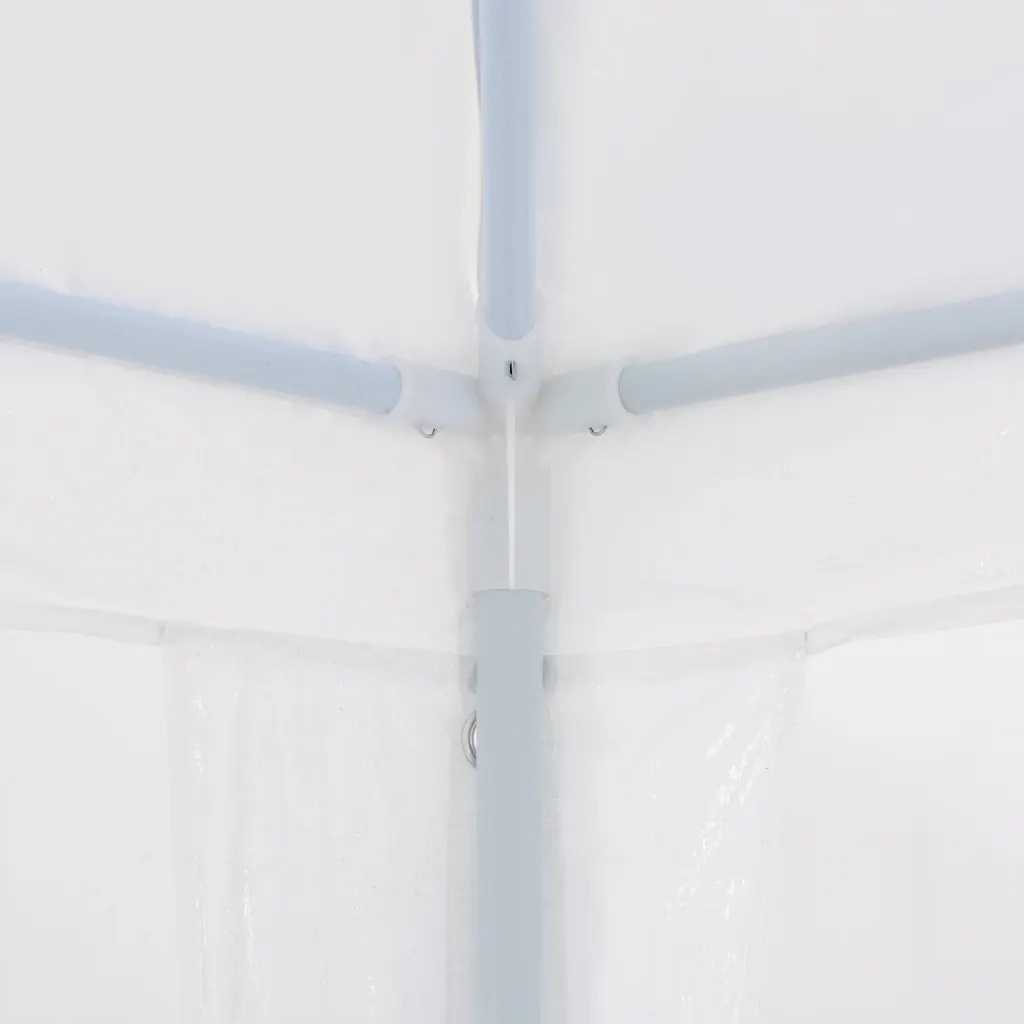 Намет виготовлений з ультрафіолетостійного випромінювання та поліетиленової води, завдяки якій він дуже практично використовувати зовні. Рама, виготовлена з стійкої до іржі, створює дах стабільною та міцною. Ця садова альтанка проста в встановленні.