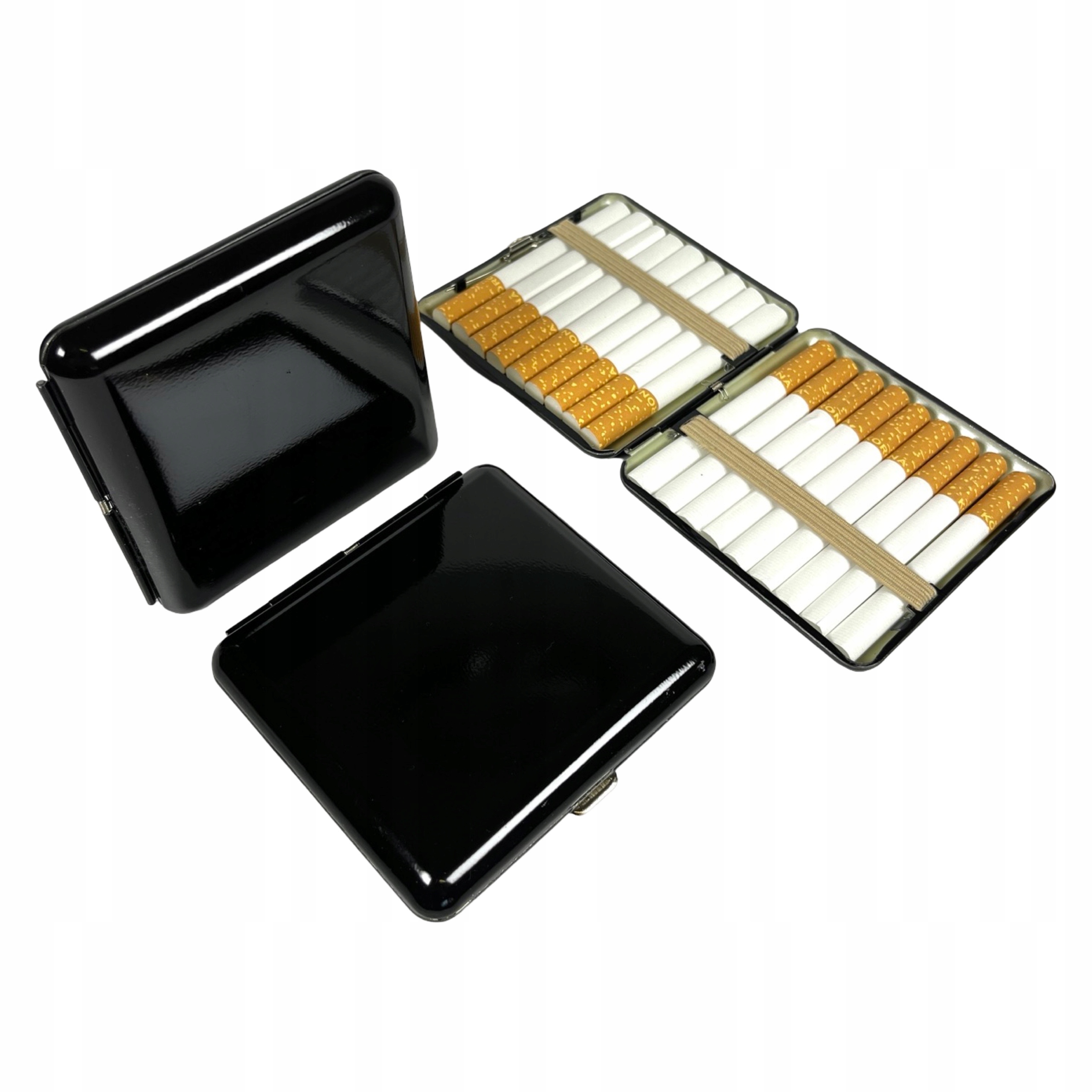 Чудової якості металевий портсигар, органайзер для сигарет з глянцевого чорного металу