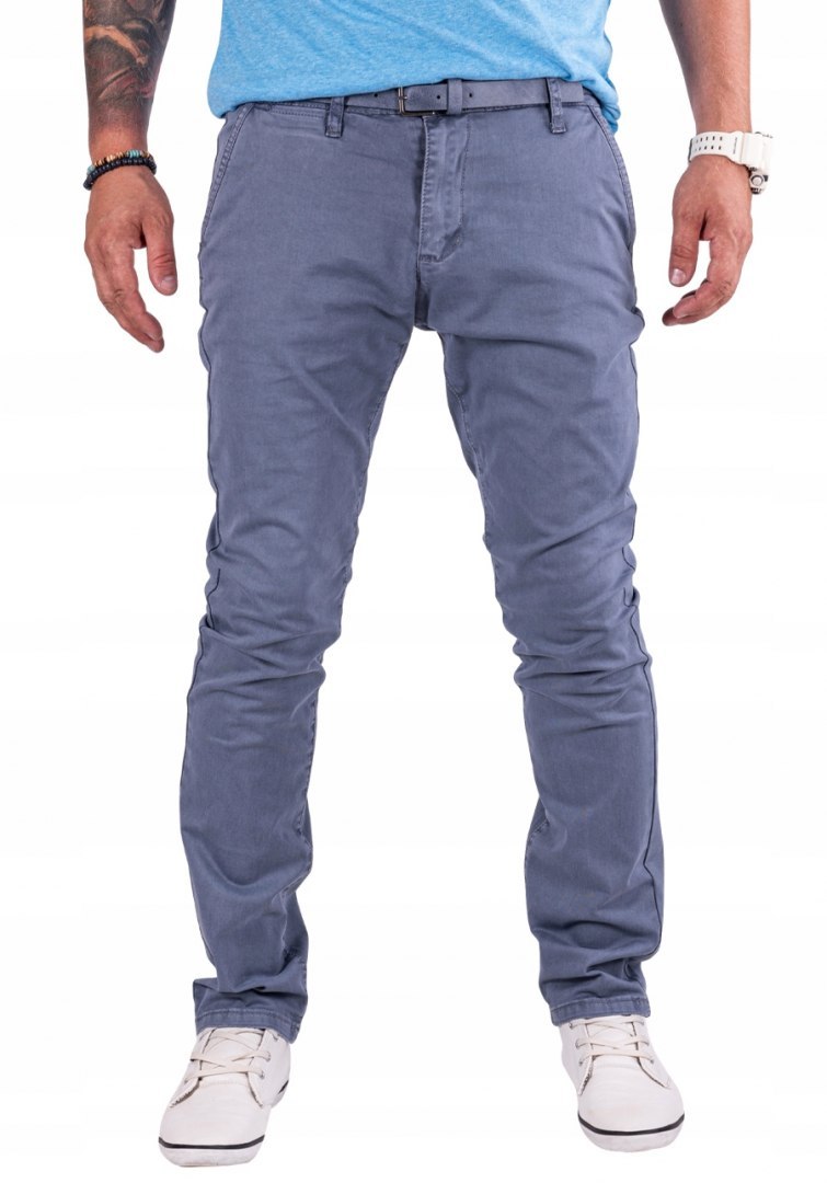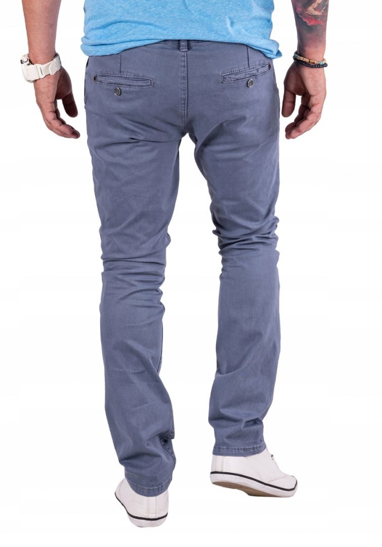 Ці штани-чоловічі чінос у сіро-блакитному, виготовленому з трохи гнучкого матеріалу, що забезпечує комфорт носіння та добре підходить до фігури. Їх розріз сучасний і пристосований, з трохи звуженими ногами.