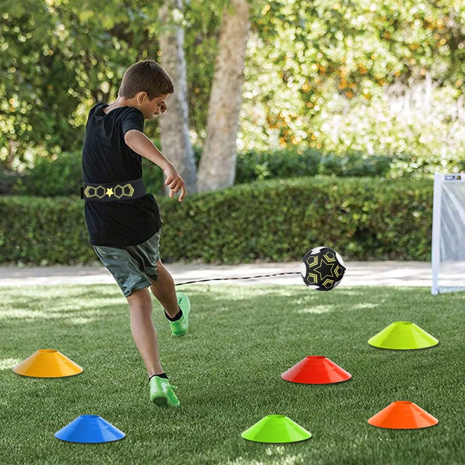 Ефективне тренування: використовуйте тренування на поясі з м’ячем, ви можете звільнити руки, більше не витрачаєте час на підняття м’яча, ви можете заощадити більше часу, щоб максимально збільшити кількість торкань м’яча для швидкого та повторюваного тренування торкання м’яча. Удосконалюйте свої навички пасу, ведення, лову, жонглювання та інші футбольні навички.