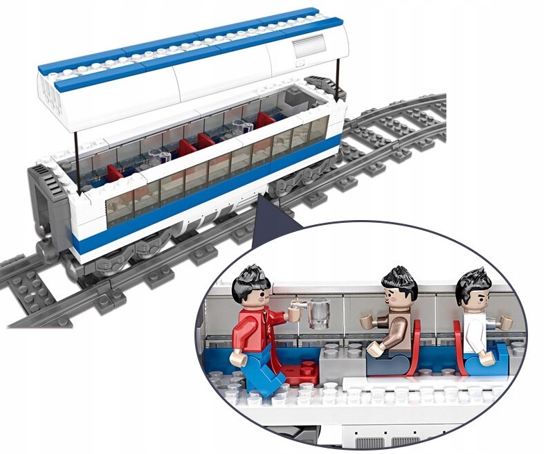 - Набір складається з 3 вагонів, 16 вигнутих колій і 6 прямих колії,