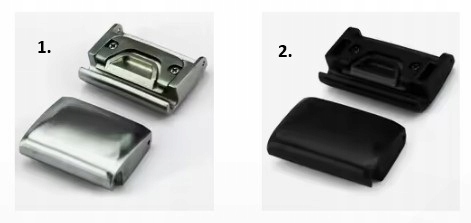 Ми надсилаємо два чорні адаптери № 2 з фотографії нижче. Адаптери з'єднують пояс з годинником.