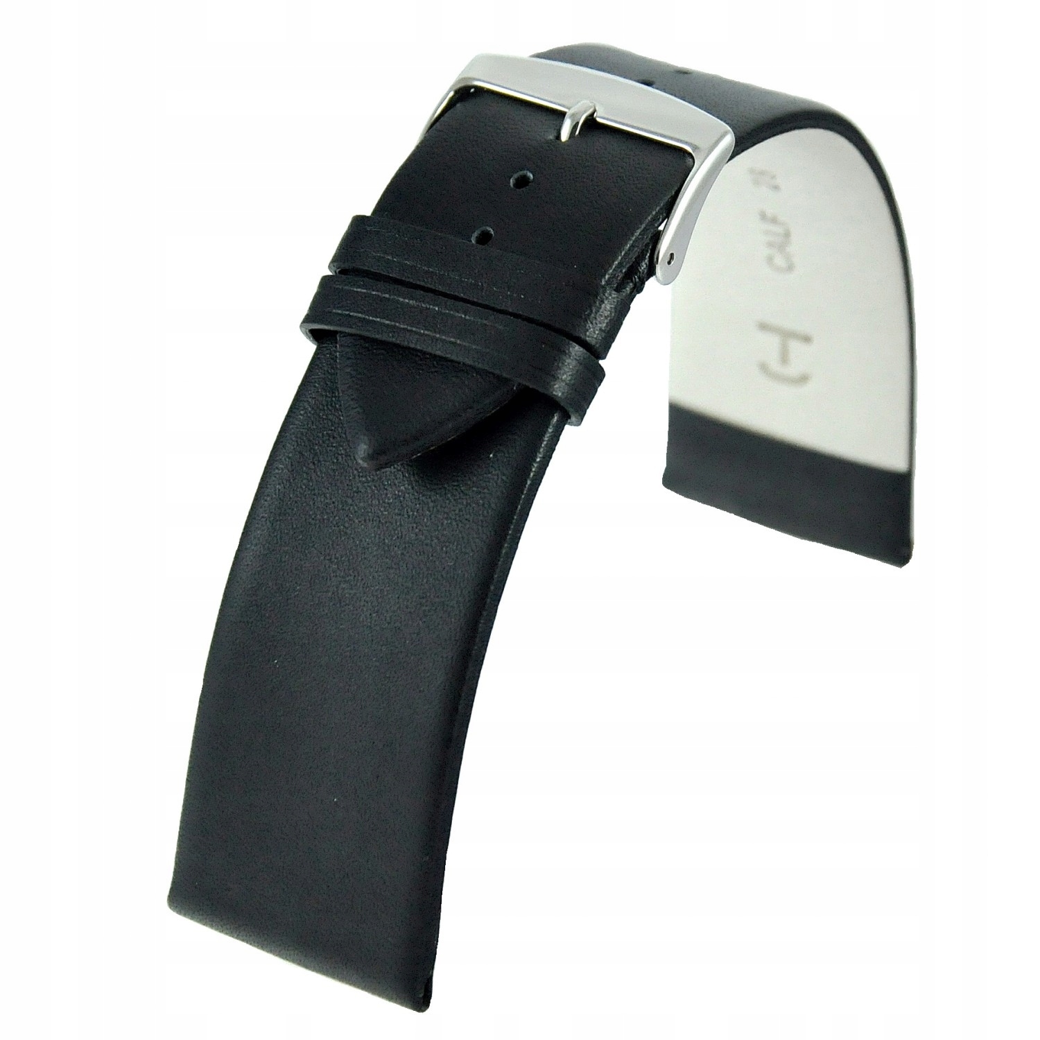 Цей чорний класичний ремінець для годинника виготовлено з м’якого теляча шкіра і не має швів. Підкладка оброблена м'яким і приємним на дотик нубуком. Його довжина 75х115 мм, а після кріплення до останнього отвору загальна довжина 170 мм. Товщина близько 2,3 мм. Форма ременя класична, тобто звужується до пряжки всього на 2 мм. Колір пряжки доступний тільки для розмірів 22 і 24 мм. Ширші розміри, 26 і 28 мм, тільки колір полірована сталь.