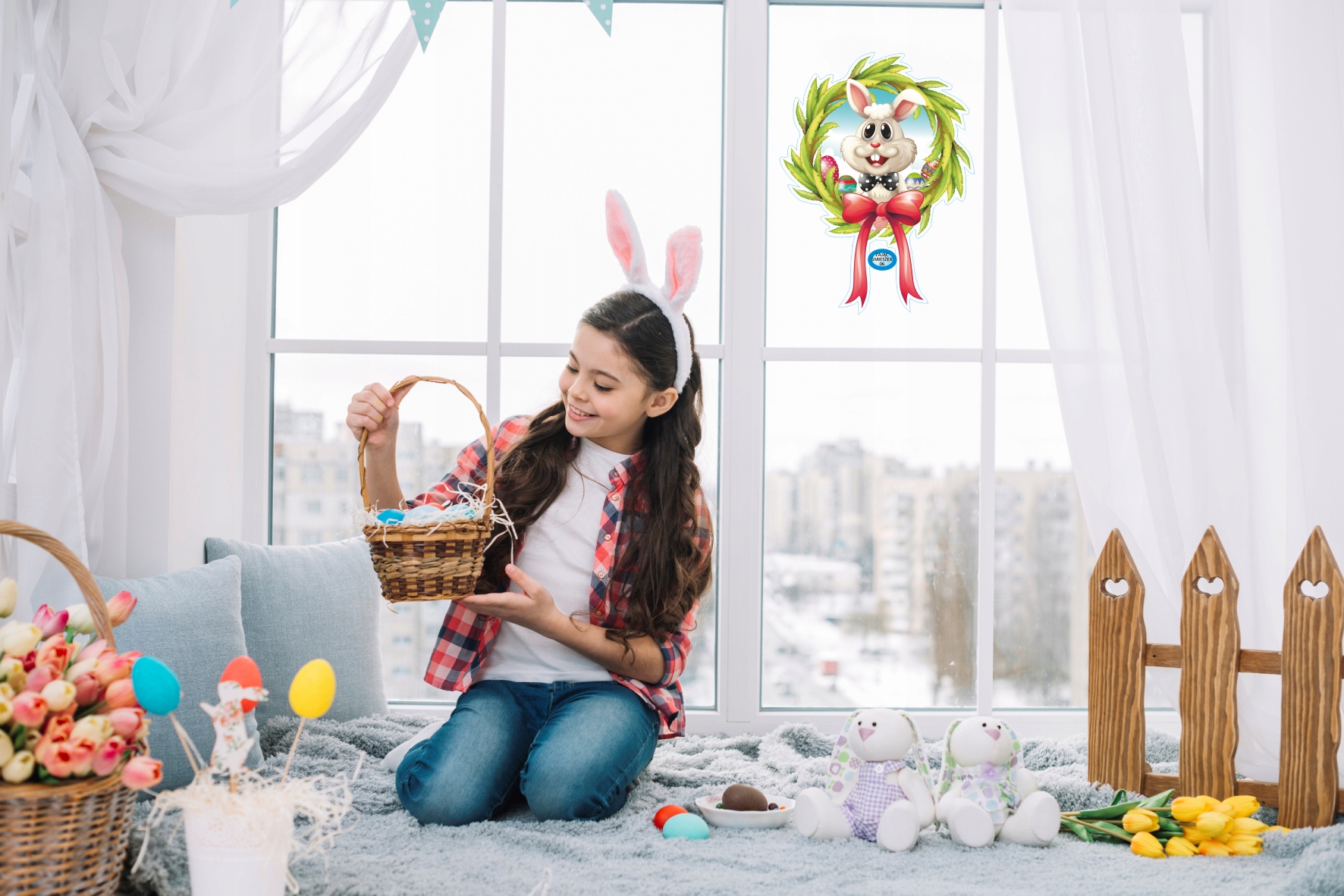 ПАСХАЛЬНА НАЛІЙКА НА ВІКНО УСМІШКИ ЗАЙЧИКА 06A