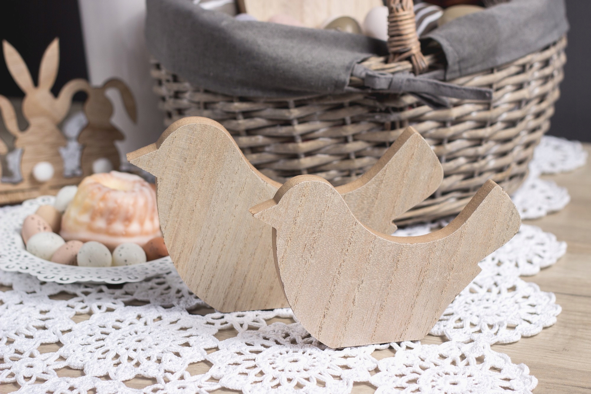 Ці дерев'яні пташки - ідеальна прикраса великоднього столу. Завдяки своїй мінімалістичній формі їх також можна використовувати для створення простих весняних композицій по всьому будинку. Це універсальна дерев'яна прикраса, яка ідеально підійде до будь-якої кімнати.