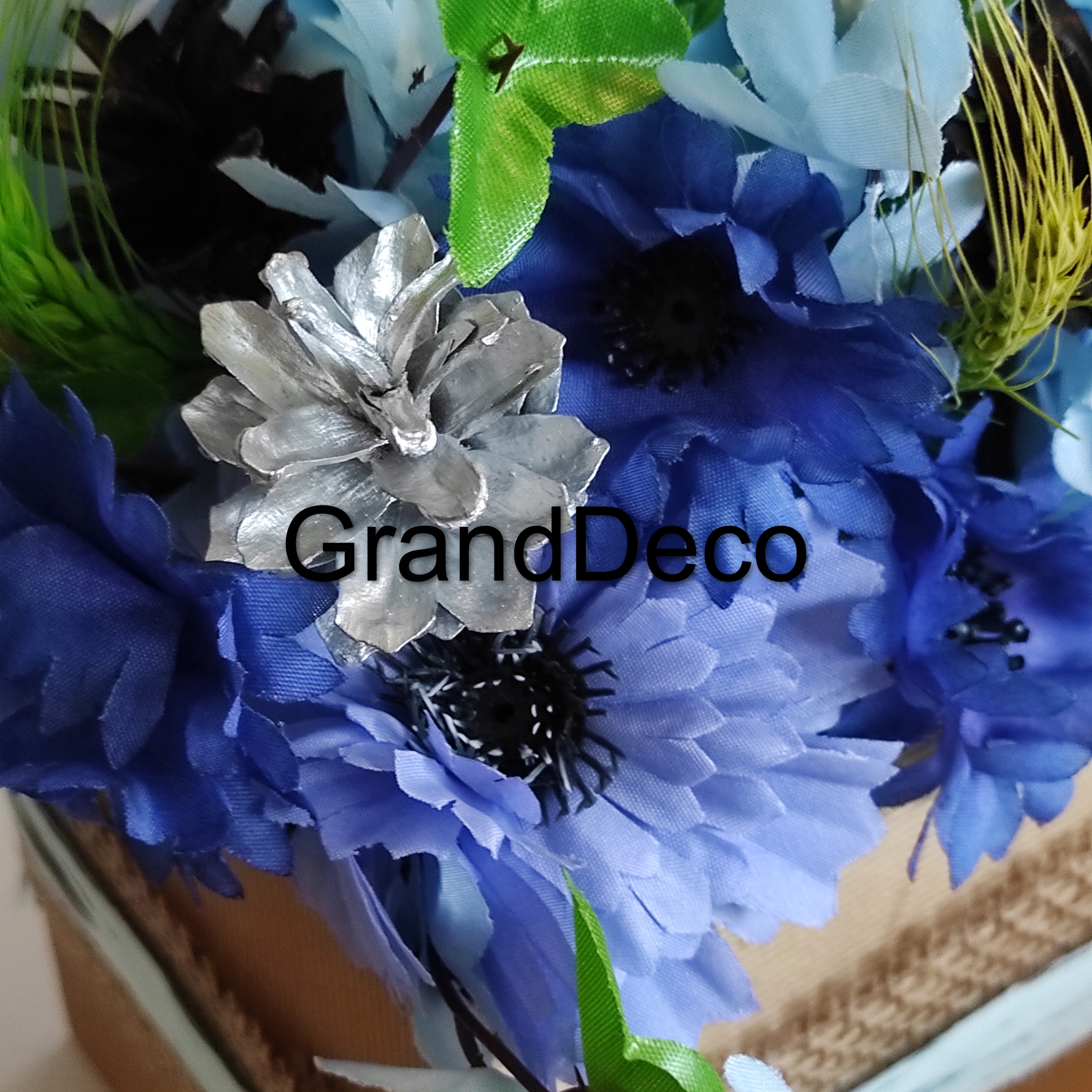 домінуючі відтінки синього, сірого та чорного кольору дають композицію елегантності та таємниці. Це нетрадиційне поєднання кольорів, які відрізняють прикраси від класичних великодніх прикрас.