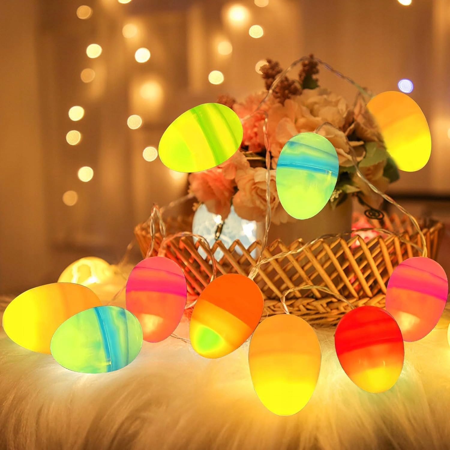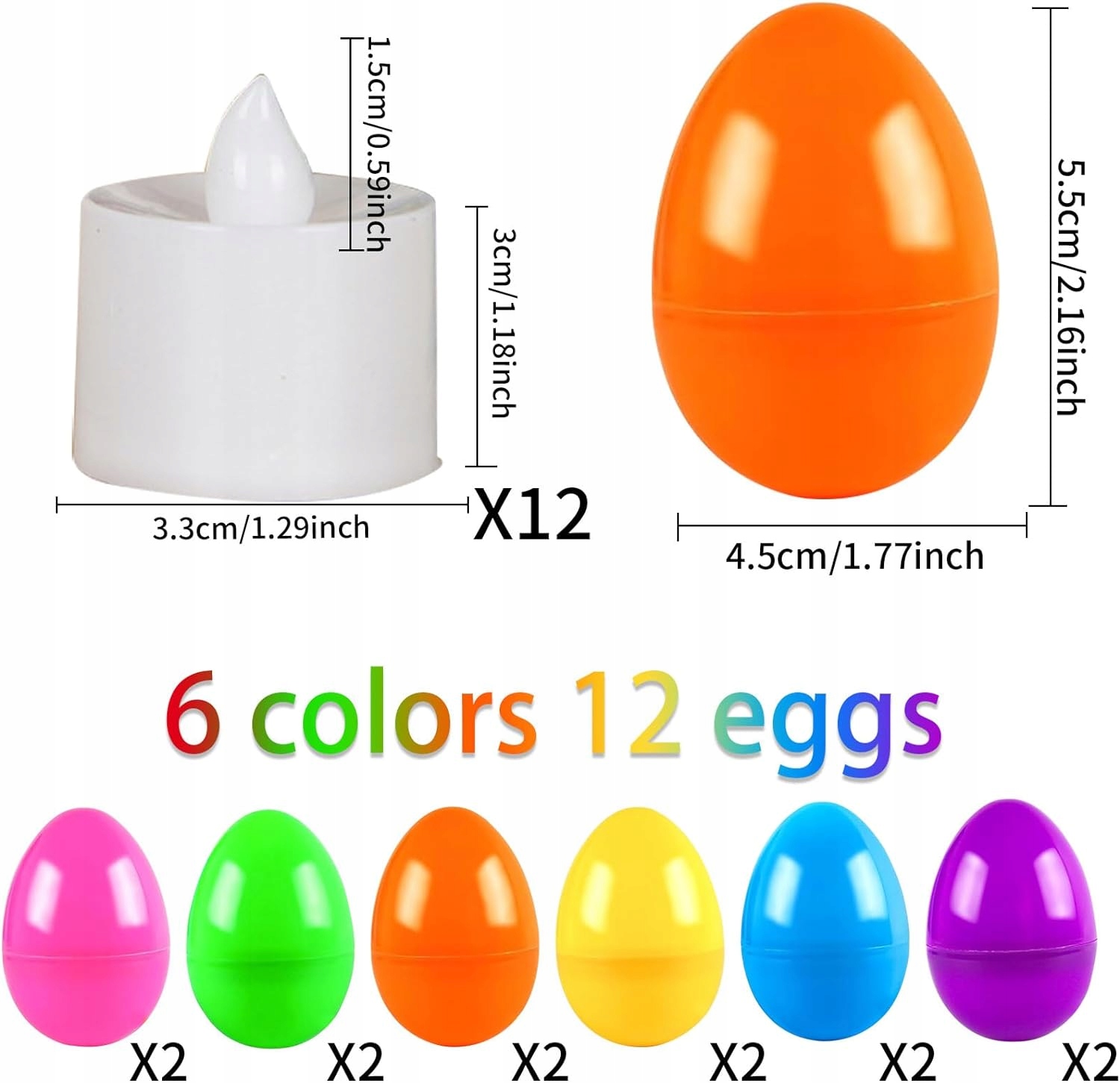 - Світловий ланцюжок із пасхальними яйцями - містить 12 свічок і 12 пасхальних яєць (по 2 кожного з 6 кольорів), розміром зі звичайне яйце, займає мало місця Ці чарівні пасхальні декоративні вогники, які легко транспортувати, є ідеальним доповненням до вашого пасхального декору, щоб створити святкову атмосферу.