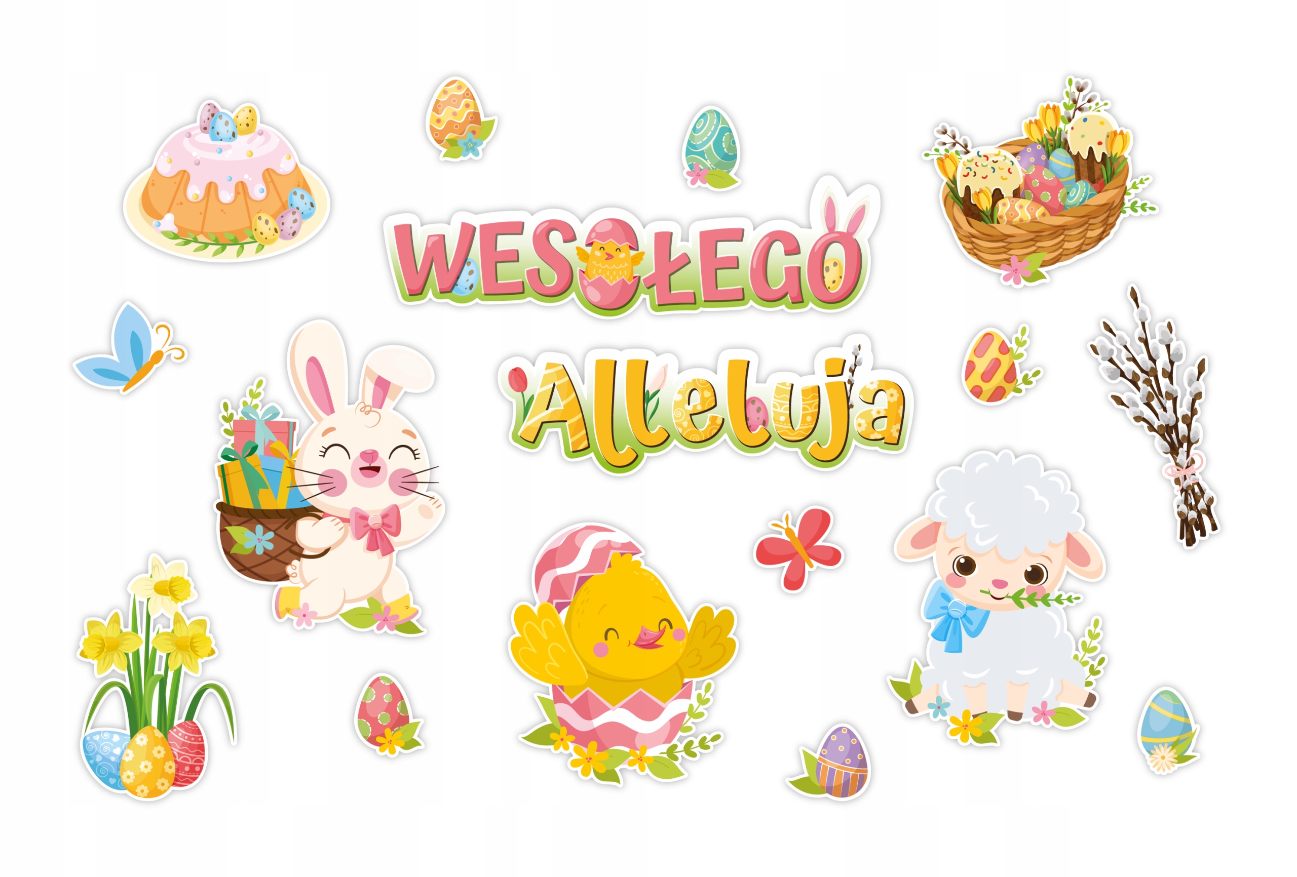 Набір складається з 2 слів, що утворюються в написі "Happy Hallelujah", 3 великих форм великодніх тварин, 4 елементи, пов’язані з Великоднем, 6 пасхальних яєць та 2 метеликів .