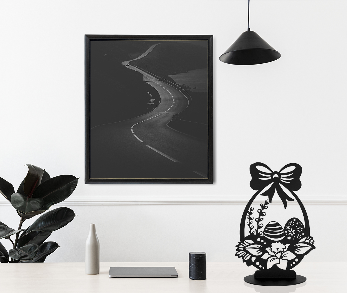 Красива унікальна різдвяна прикраса - Чорний металевий пасхальний кошик
