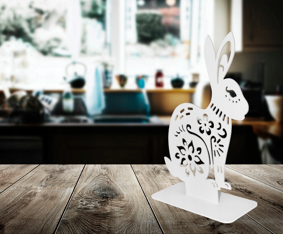 декоративний зайчик, виготовлений з металевого порошку, намальованого білим.