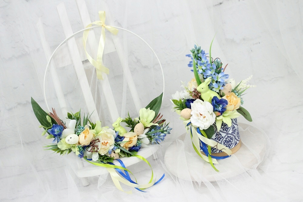 У наших пропозиціях ми також маємо композиції в подібному стилі, прикраси для великодньої кошика або кошика з готовим прикрасою.