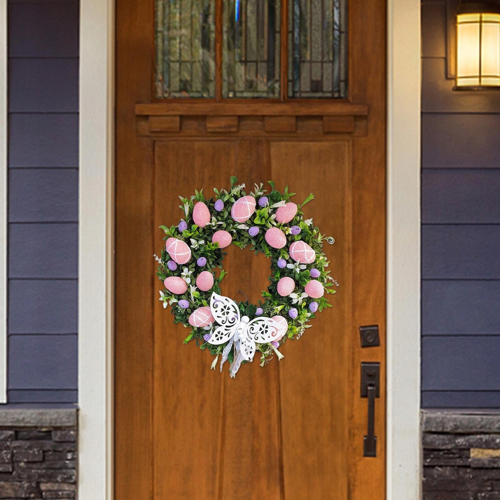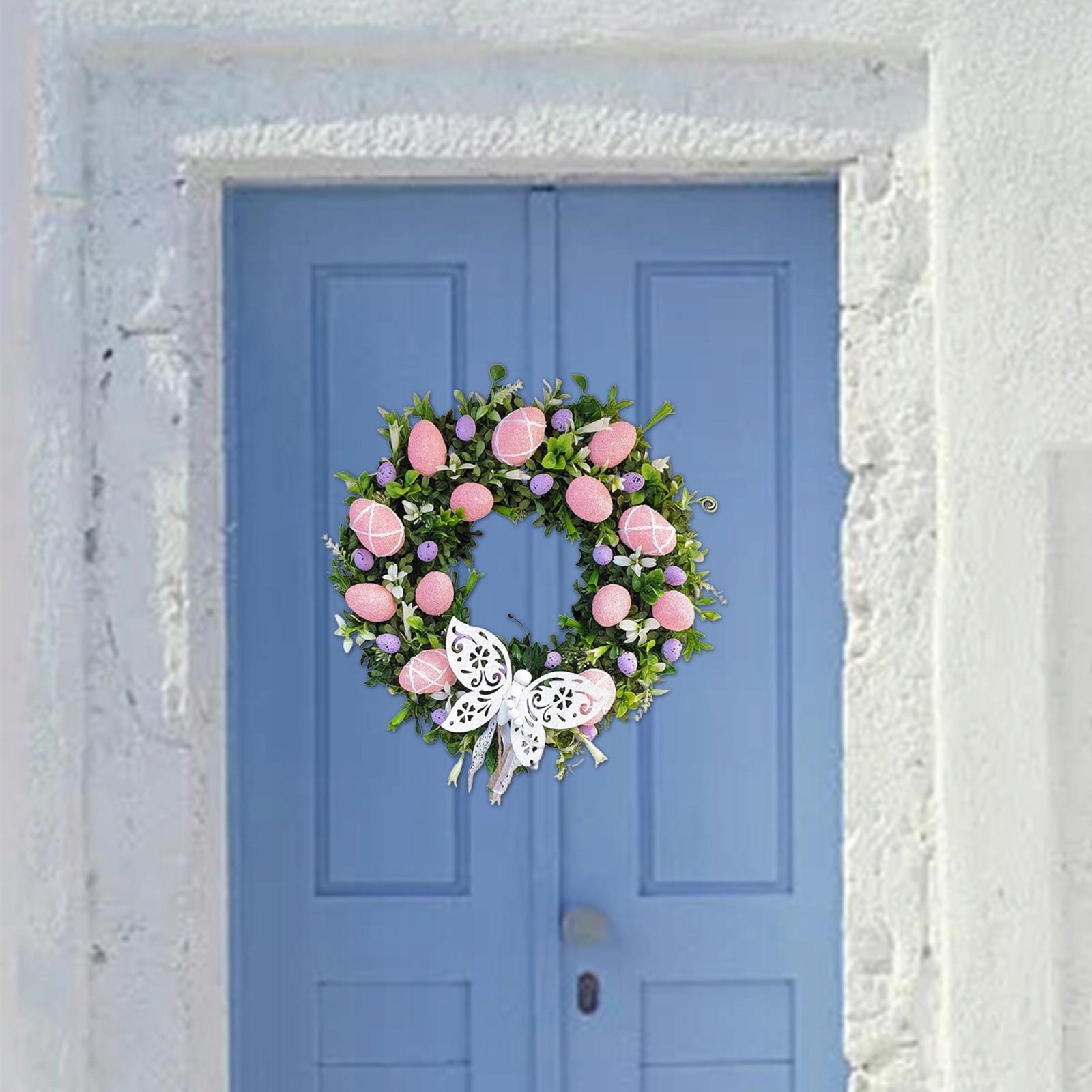 Пасхальний вінок із різнокольоровими яйцями Пасхально-рожевий