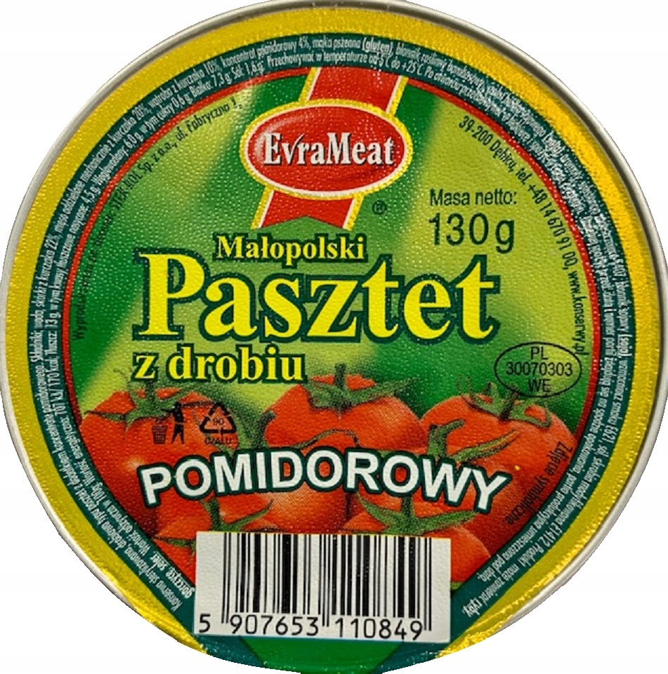 ПАШТЕТ З ПТИЦІ З ПОМІДОРАМИ 130Г EVRAMEAT