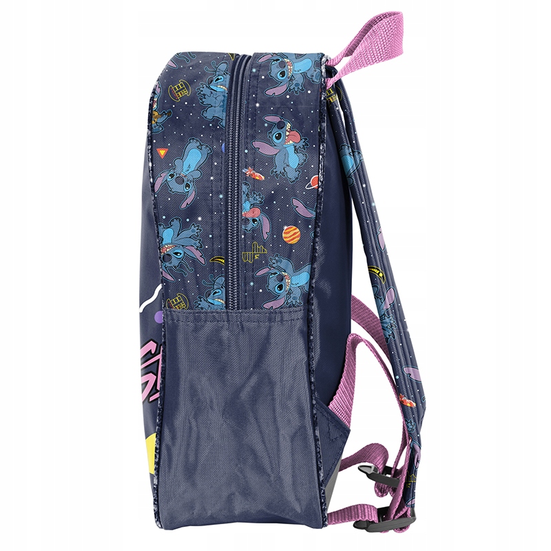 виготовлений у темно -синій кольорові з рожевими та синіми деталями , а на передній частині рюкзака - опуклий 3d print з мотивом нещастя Діснея - стібка.