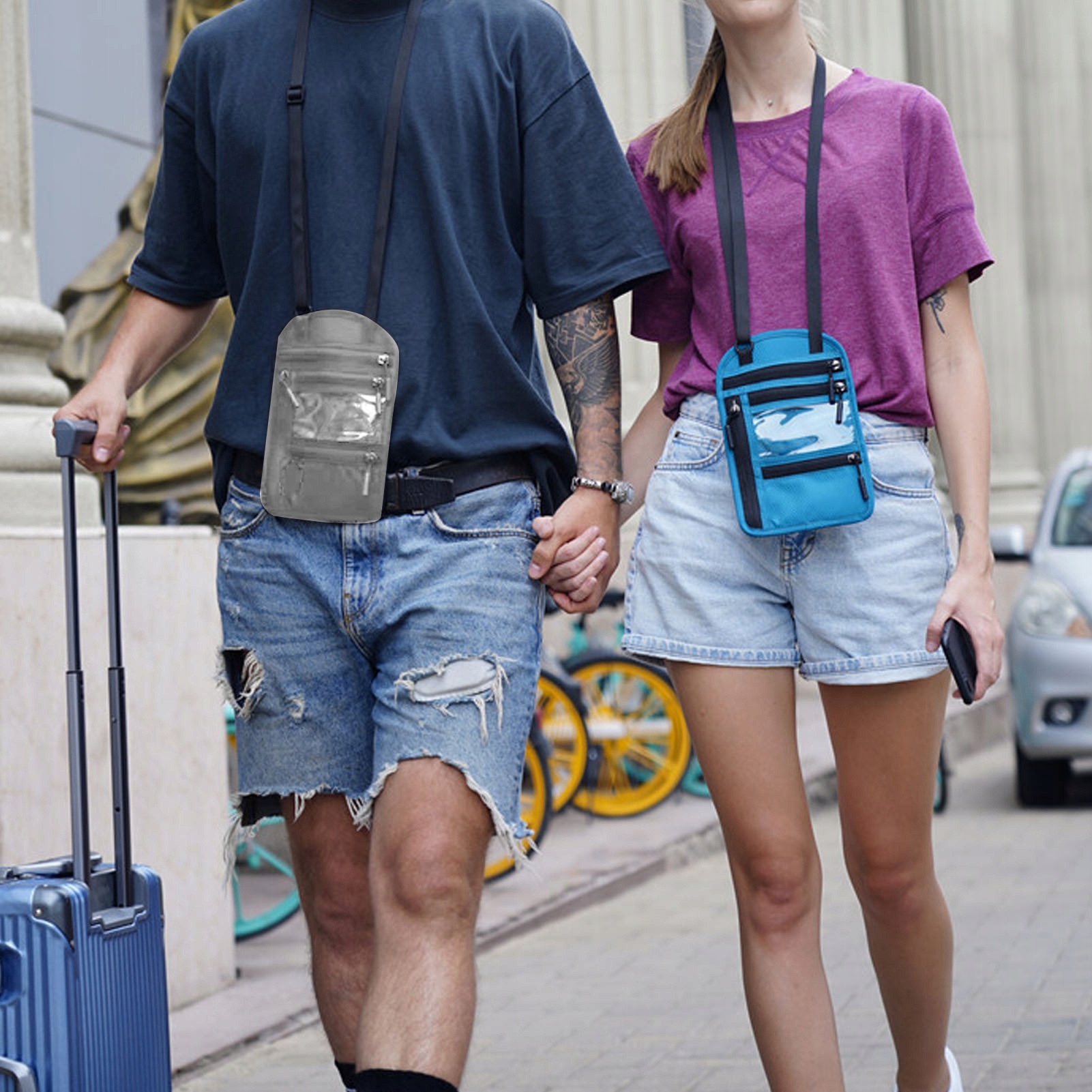 Гаманець на шию Легкий дорожній гаманець на шию з отвором для паспорта, багатофункціональний гаманець на шию з замком для ділових поїздок, світло-сірий